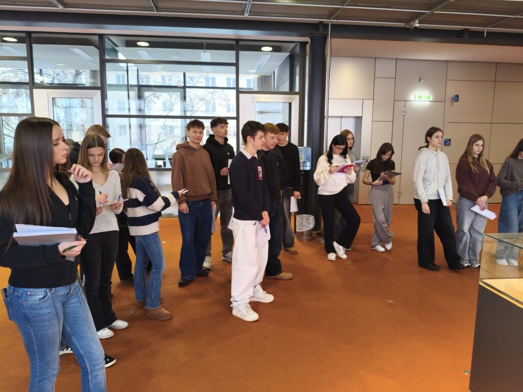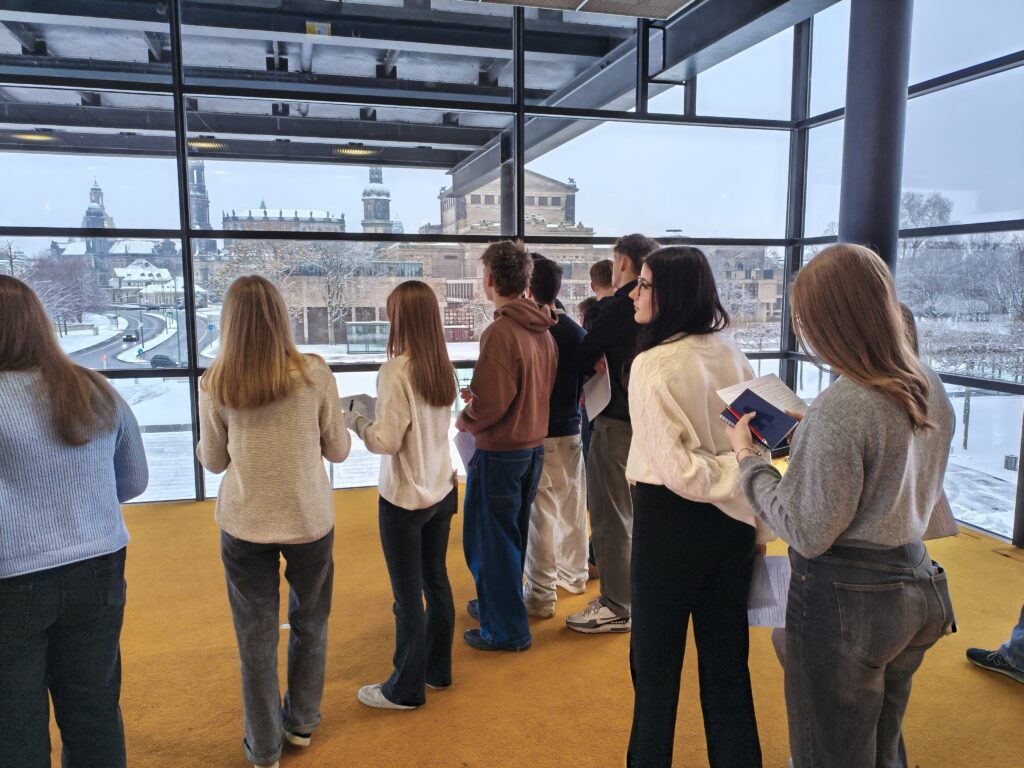 Am 30.01.2026 besuchten wir den Sächsischen Landtag. Zuerst wurden wir begrüßt und Frau Portack vom Besucherdienst hat sich uns vorgestellt. Danach wurde uns ein verkleinertes Modell des Landtages gezeigt. Dieses war unterteilt in Neu- und Altbau. Der Neubau wurde vorwiegend aus Glas gebaut als Widerspieglung für die Offenheit und Transparenz des Sächsischen Landtages. Die Form des Neubaus ist einem Dampfer nachempfunden, da der Landtag auf einem ehemaligen Hafen errichtet wurde. Bis 1933 tagten die Abgeordneten im Ständehaus und nach 1990 traf man sich übergangsweise in der Dreikönigskirche, bis der Neubau fertiggestellt war.